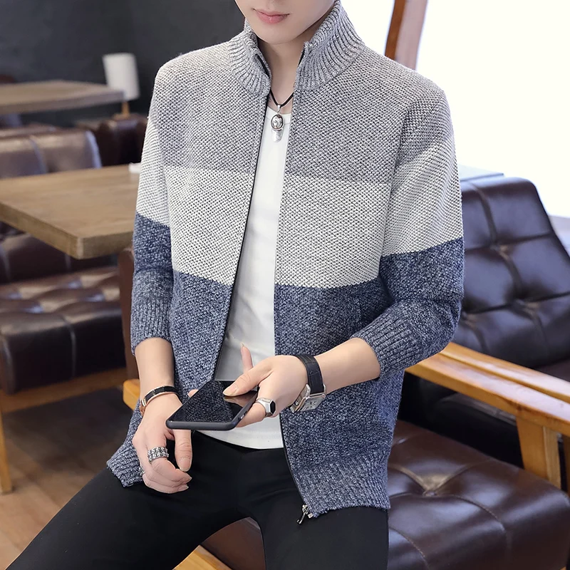 2018 New Autumn Men's Knitted Sweaters fashion Long sleeve stand Collar Male Cardigan stitching Sweaters casual Coat Brand Men's
