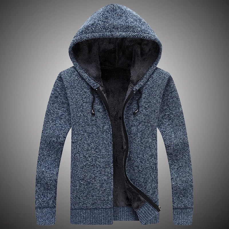 Solid Color Hooded Sweaters Men Autumn Winter Casual Jacket Thick Slim Fit Zipper Coat 2018 Autumn Sweater for Men Blue Grey S68