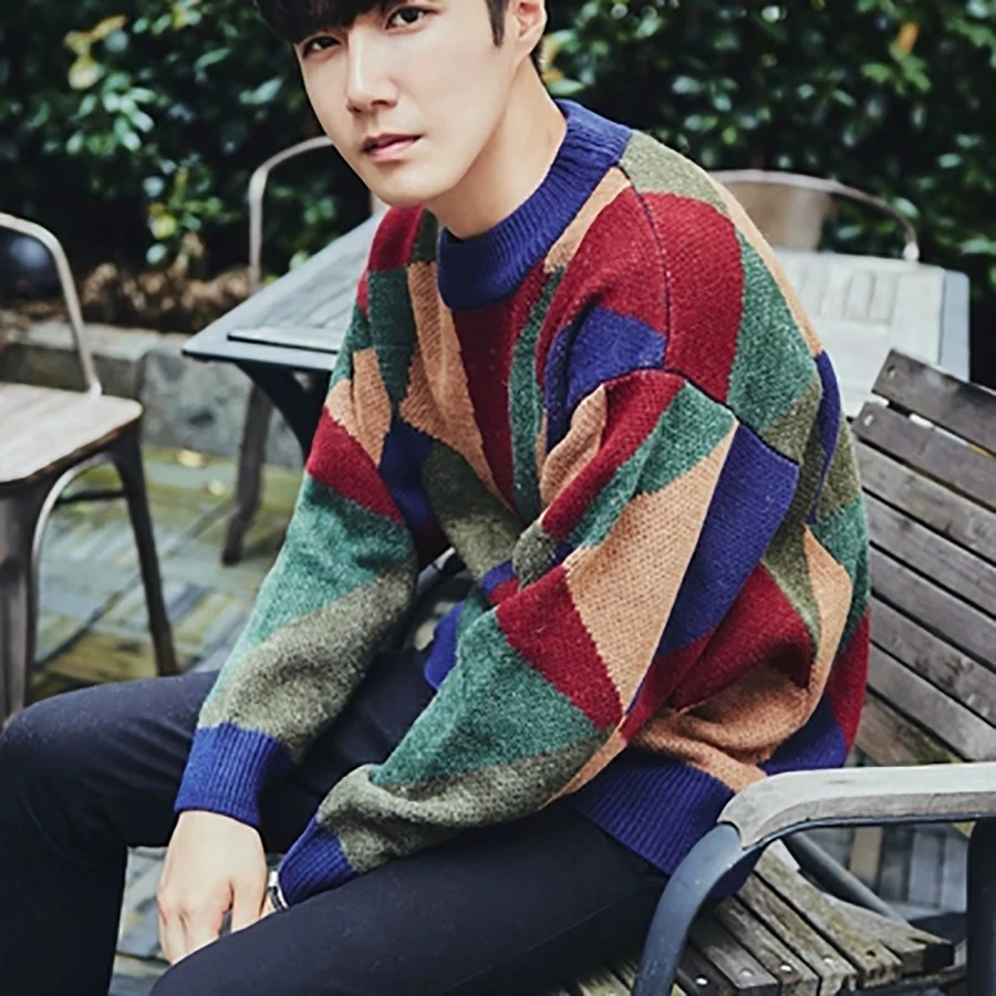 Fashion Trendy Casual Men Sweater Wool Retro Pullover Men Korean Style Warm Sweater Knitted Erkek Giyim Kazak Man Clothing MY015