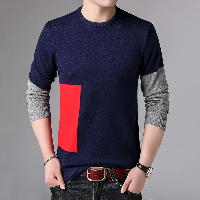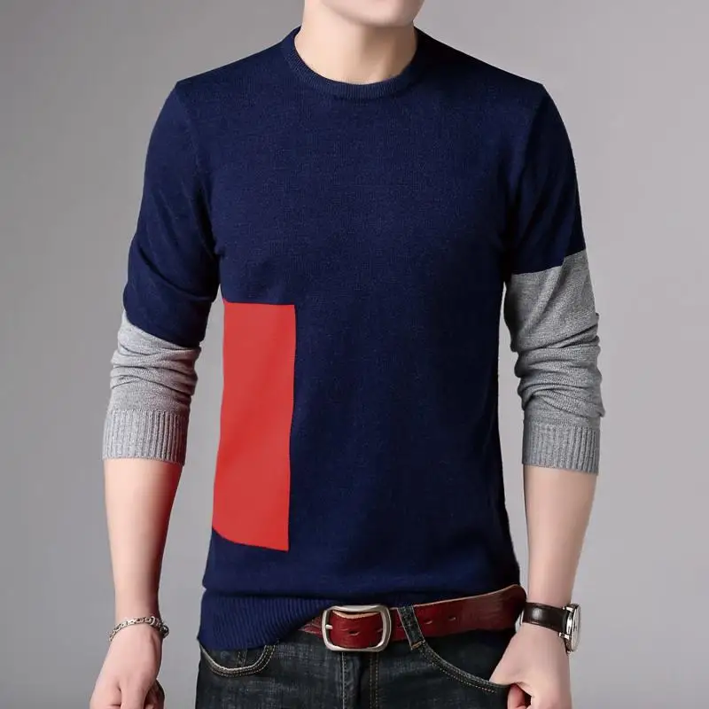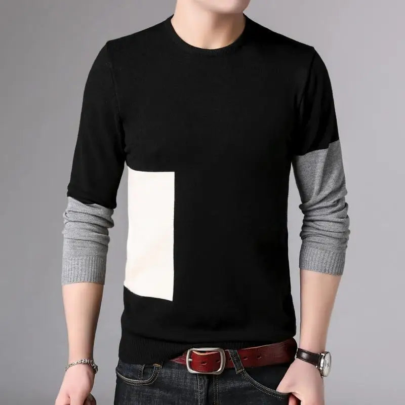 Hot 2018 Autum New Sweater Men Casual Pullover Men Long Sleeve O- Neck Patchwork Quality Knitted Brand Male Sweaters Plus Size