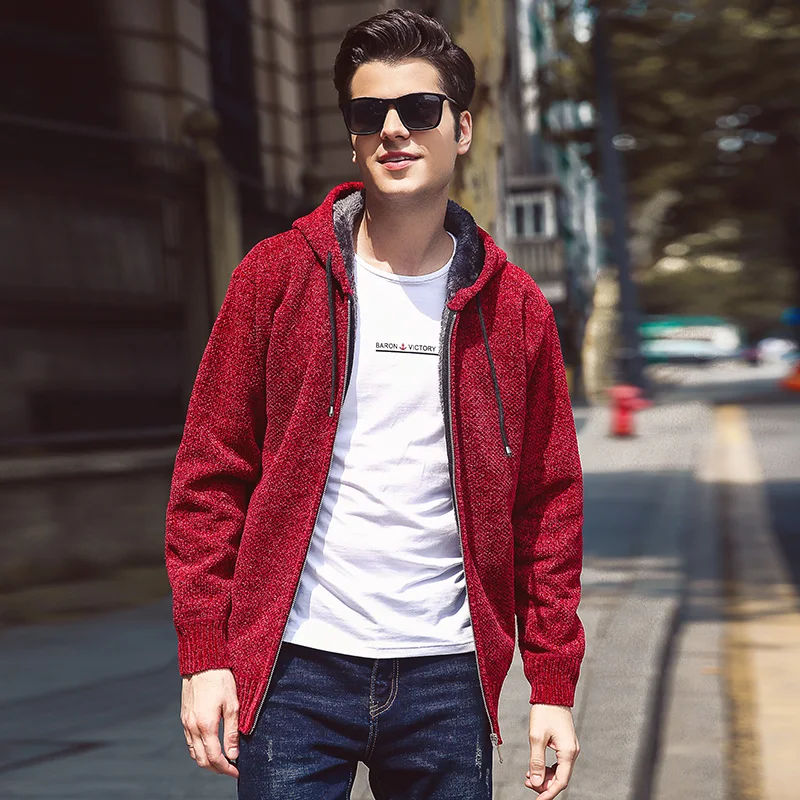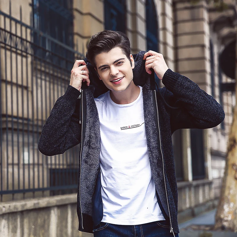 Men Hooded Cardigans Sweater Male Knitted Tops Man Hood Cardigan Woollen Warm Thicken Fleece Chunky Sweaters Knitwear Male Wear