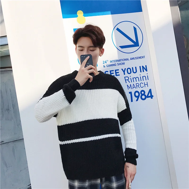 2018 brand social cotton thin men's pullover sweaters casual crocheted striped knitted sweater men masculino jersey clothes