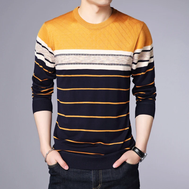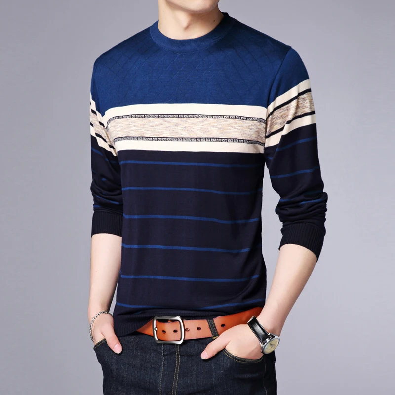 E-BAIHUI O-Neck Pullover Men Brand Clothing 2019 Autumn Winter New Arrival Cashmere Wool Sweater Men Casual Striped Pull Men 213